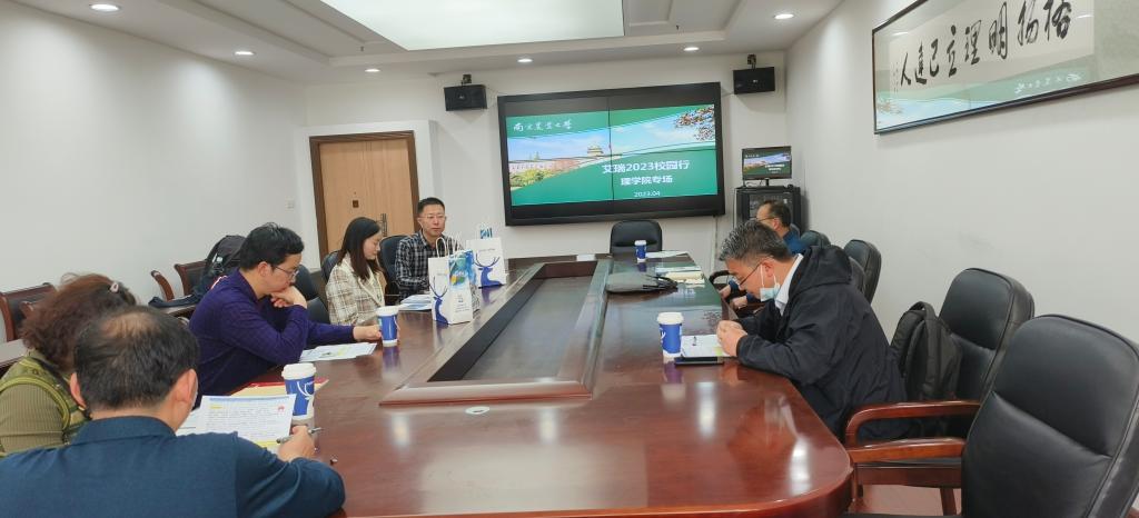 宣讲会前,xp天堂 桑书记和毕业班班主任老师与艾瑞负责人陈韩一行开展座谈,双方就产学研合作、就业创业基地深入共建、学生实习实践等问题进行了交流。