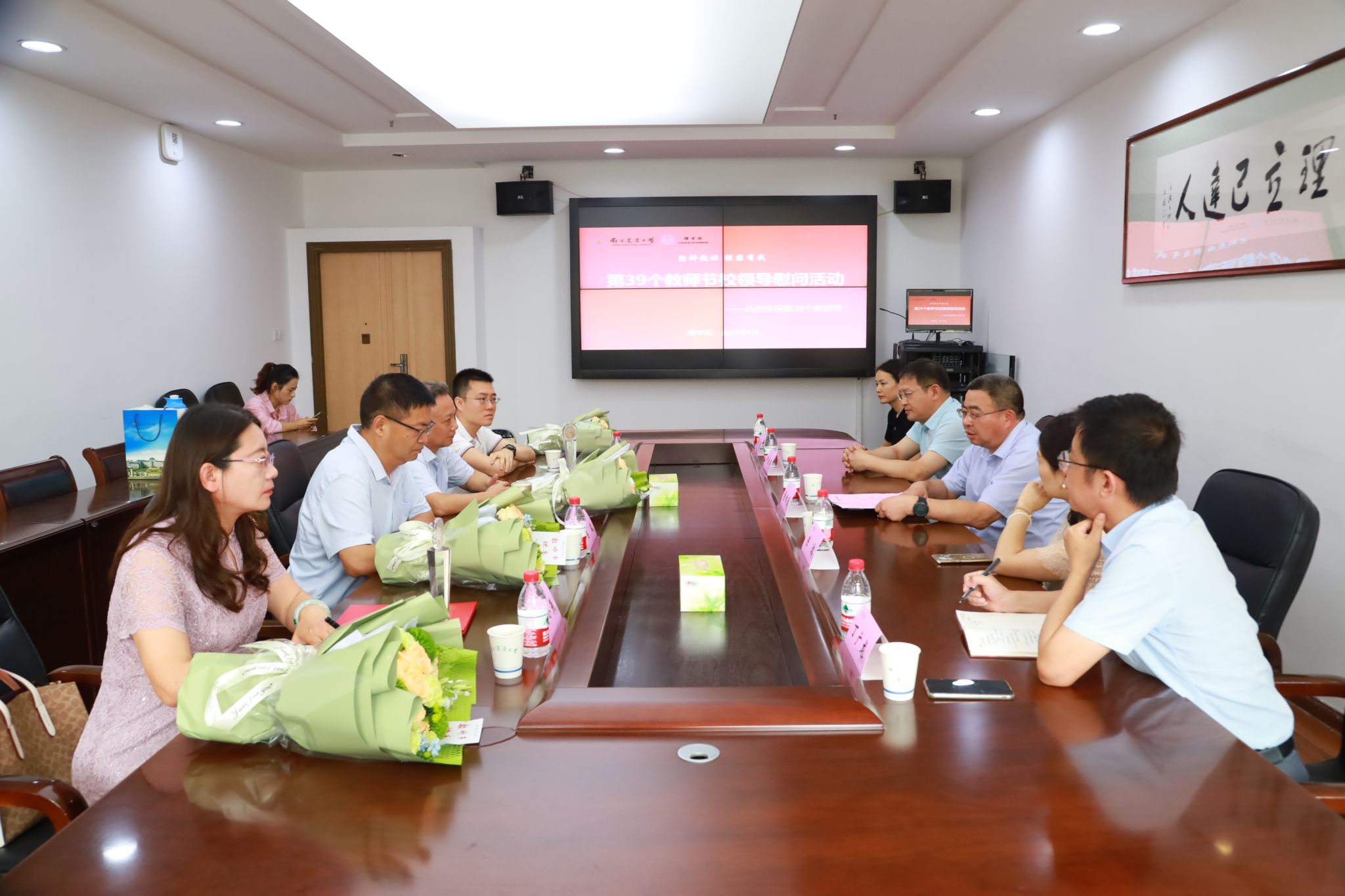 9月8日上午,在全国第39个教师节即将到来之际,校党委常委、副校长董维春一行来到学院慰问一线教师。党委宣传部副部长、教师工作部副部长陈洁,学院党委书记丁广龙、院长章维华陪同慰问。2023年度校“师德标兵”获得者、从教40年的兰叶青,校“优秀教师”获得者周小燕,教师代表吕波、王浩浩参加座谈交流。