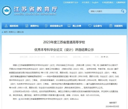 近日,江苏省教育厅公示了2023年度江苏省普通高校本科优秀毕业论文(设计)评选结果,xp天堂