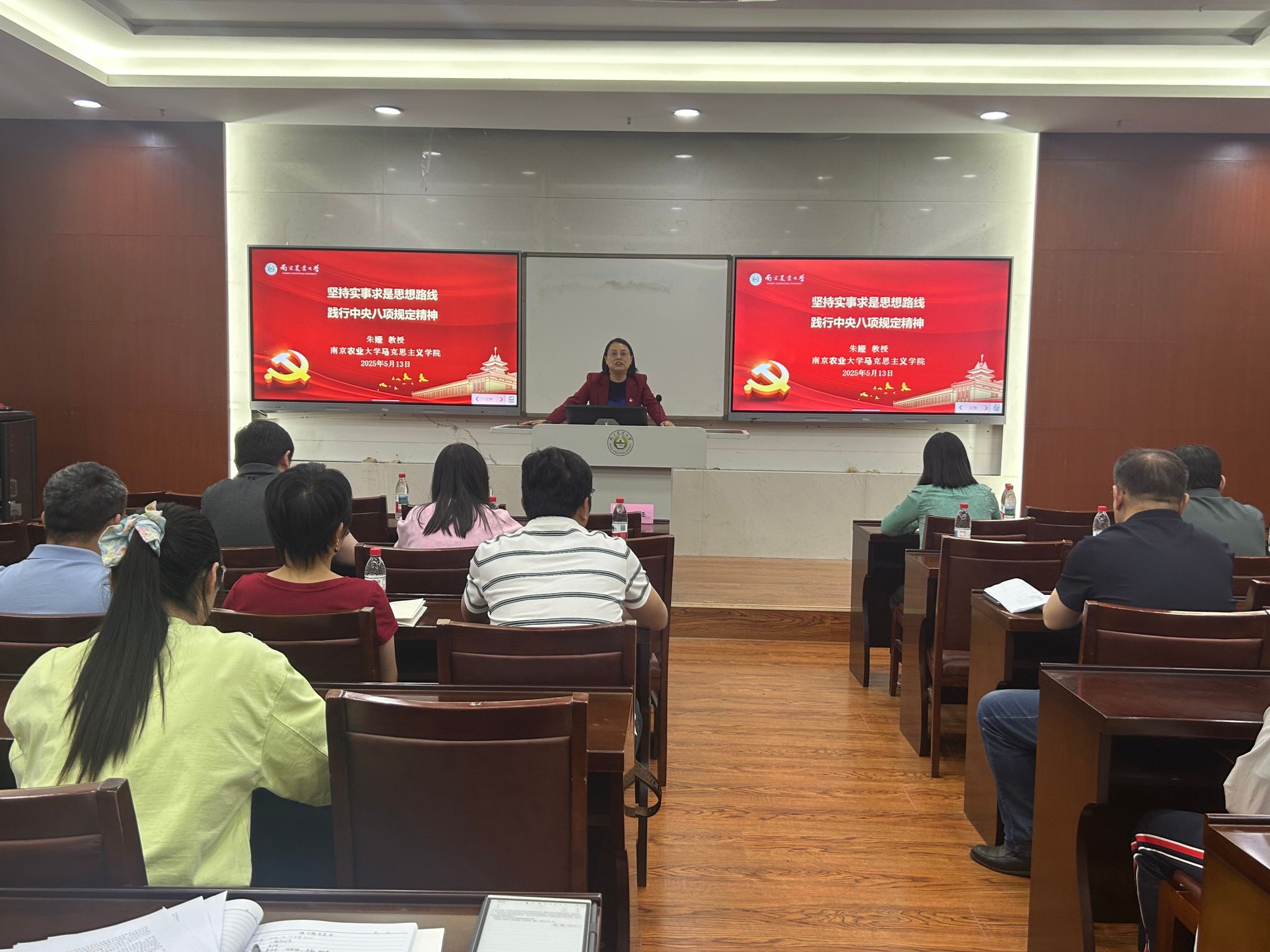 马克思主义学院的朱娅教授为中心组带来了一场内容丰富、意义深刻的党的建设专题讲座。讲座紧扣 “坚持实事求是思想路线,践行中央八项规定精神” 这一核心主题,全面且深入地展开报告。学院党委理论学习中心组全体成员、党委委员、全体党支部书记、副书记参加学习会。学习会由学院党委书记吴彦宁主持。