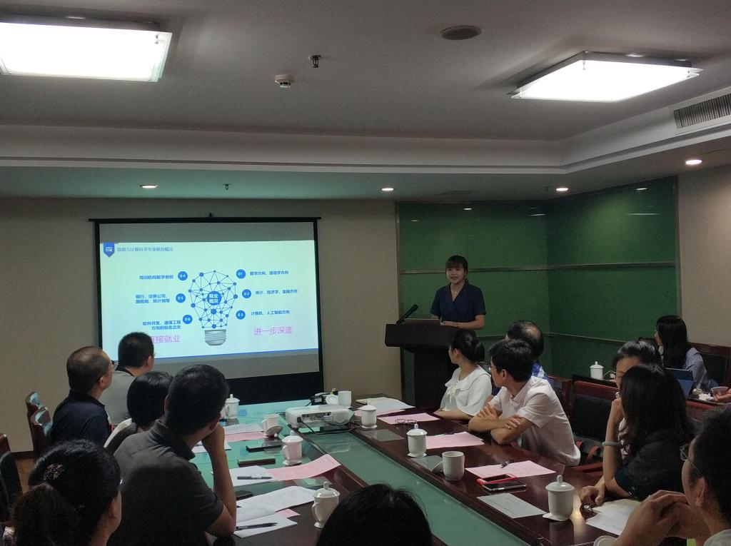 张良云教授介绍了我院数学学科的现状、发展历程和教学、科研工作开展的基本情况,然后杨涛主任对我院数学系信息与计算科学及统计学专业设置、培养方案等方面做详细介绍。研讨会上,周小燕老师还就我院数学系线上课程建设与初步使用效果做简要介绍