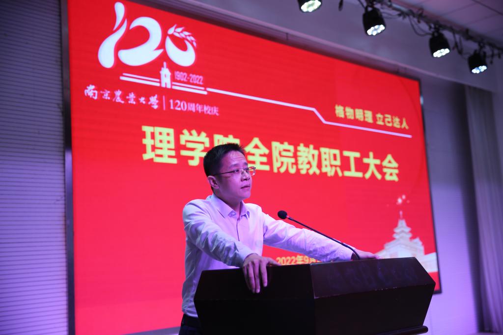 院长章维华在讲话中指出,全院教师应发挥基础研究的优势,主动求变,关心关注国家战略和行业需求,融入到学校学院有组织的科研大环境中,深化学科交叉融合和成果运用。要进一步凝练学科方向,整合优势特色,力争在新一轮学位点建设中有所突破。他强调,教师是青年学生认知的直接影响者,应在教学中践行立德树人根本任务,严格遵守高校教师十项行为准则,引导学生明辨义利,强化社会责任,树立正确三观。他希望,全体教师要进一步解放思想,牢记使命,锐意创新,立足本职,争先争优,以更加昂扬的斗志,为建设一流学科贡献智慧和力量,共同为实现学院事业高质量发展而努力奋斗。