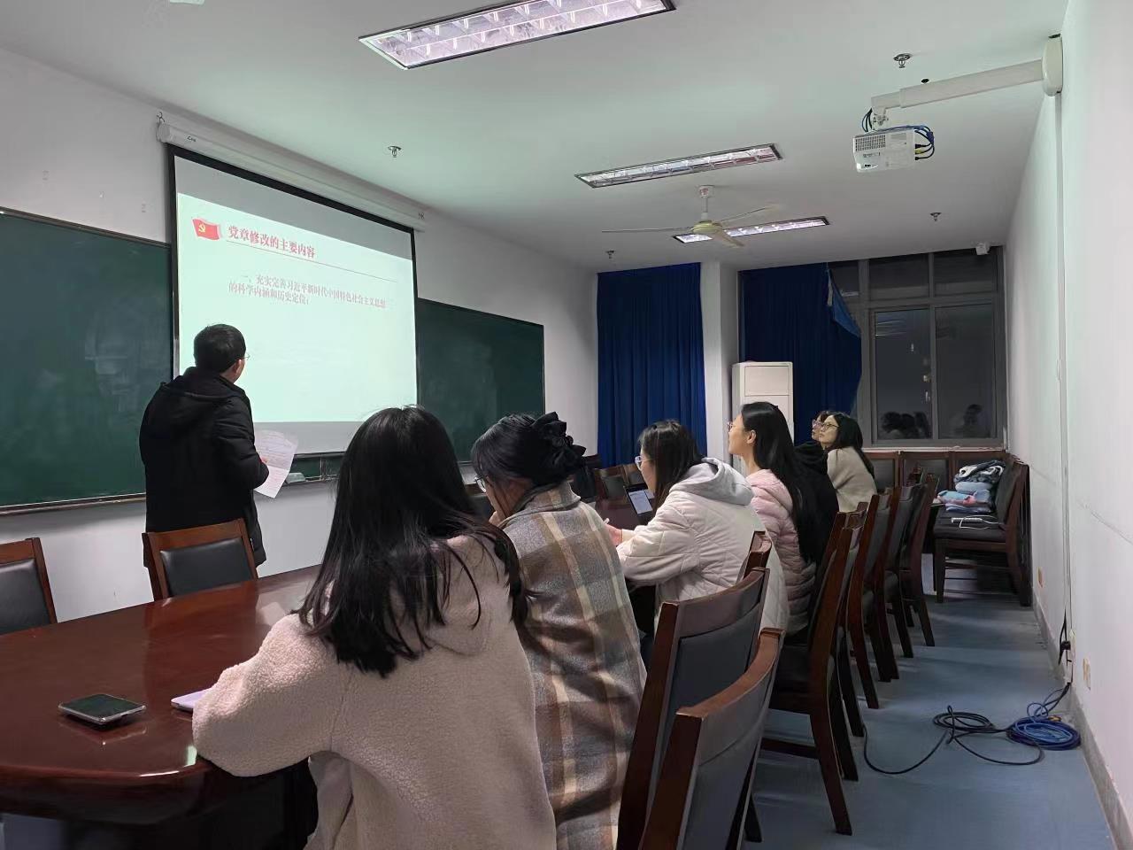 随后,支部全体党员一块学习了《二十大党章修正案》中党章修改的主要内容,并互相分享了心得体会。交流心得时大家发言踊跃,支部副书记方云霏表示:党章修改顺应了时代要求、体现了全党意志、反映了人民心愿;支委郑梦迪认为:学生党员要自觉学习党章、遵守党章、贯彻党章、维护党章。