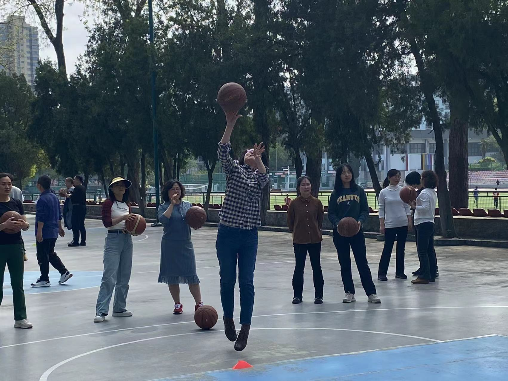 在充满活力的赛场上,教师们以球会友,以赛传情,尽情享受着运动带来的快乐与满足。定点投篮看似简单却是很充满技巧的运动,不仅是力量的展现,更是心态和技巧的考验。在绕杆接力和对抗赛中,各支队伍展现出了积极配合团结协作的精神,他们或传球、或投篮,配合默契,比赛过程既紧张激烈又充满乐趣,充分展现了篮球运动的魅力。这场篮球赛让教师们锻炼了身体,也让他们在紧张的工作之余放松了心情。