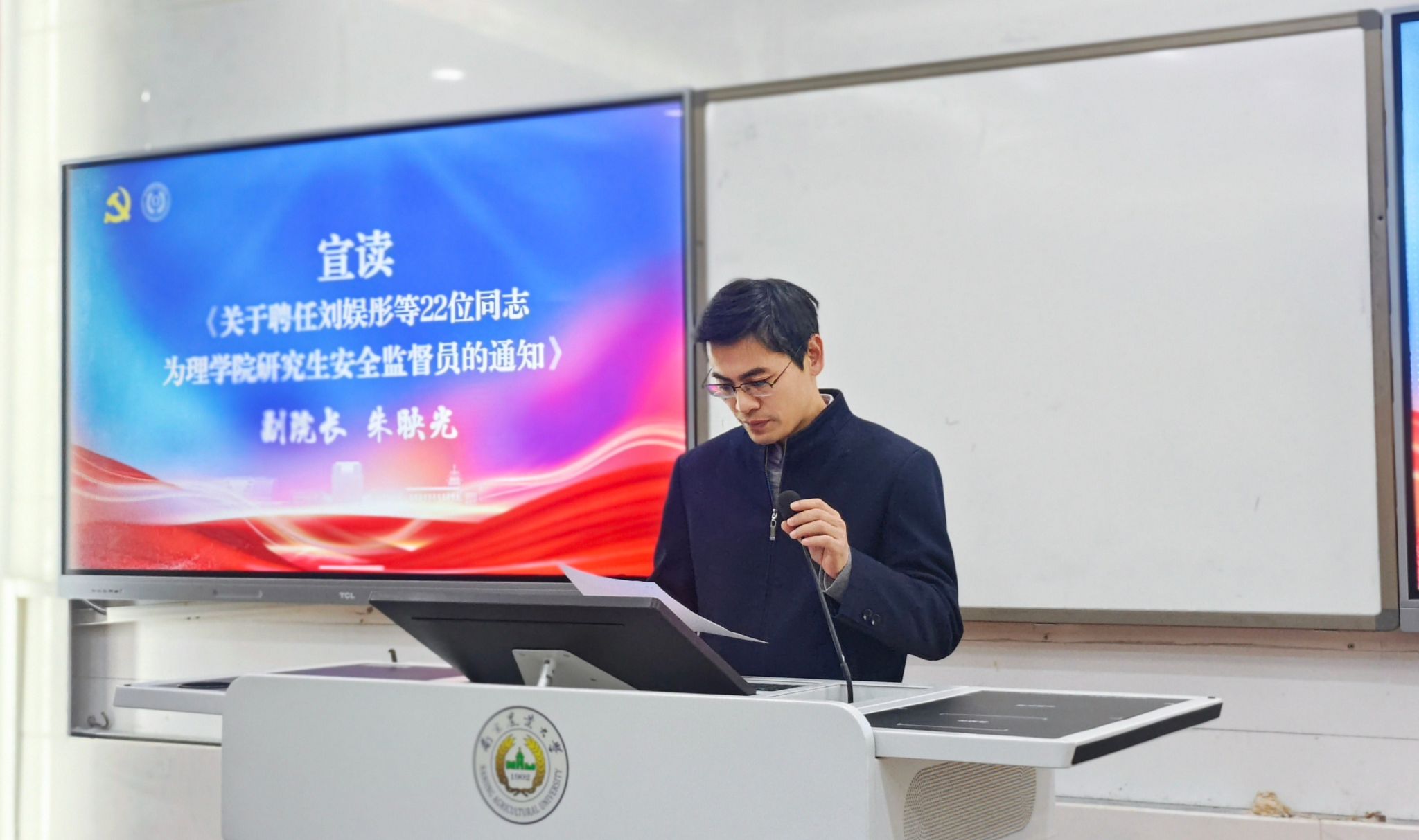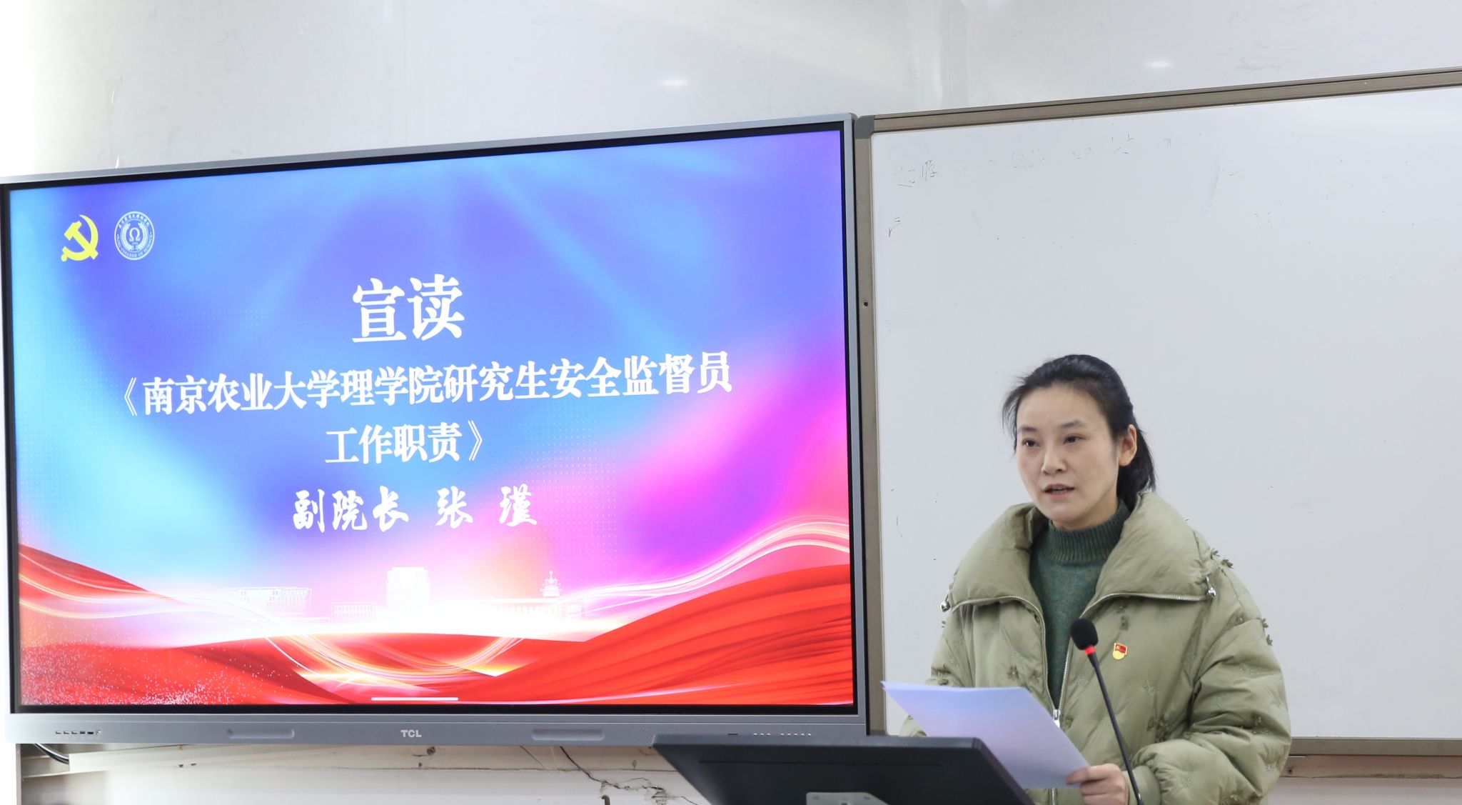 研究生安全监督员工作职责》进行了详细解读,明确了安全监督员的工作内容、责任边界与履职要求。随后,吴顺凡为安全监督员代表颁发聘书,并与大家合影留念。