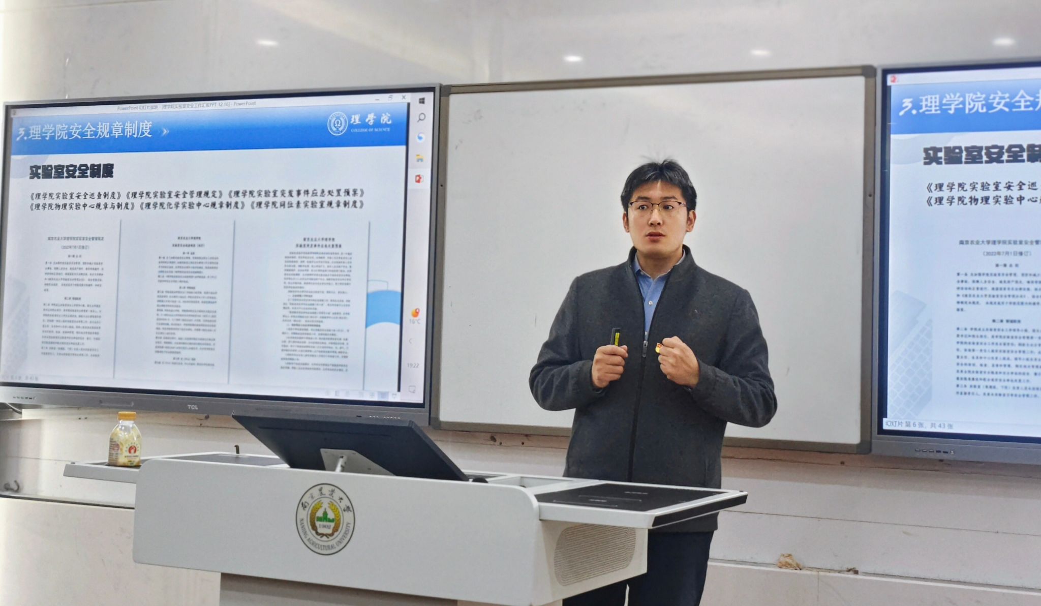聘任仪式结束后,“理响先锋”启航计划首场专题培训紧接着展开。吴顺凡以《凝聚共识守护安全—研究生党员安全教育》为题,为全体研究生党员带来专题讲座。讲座紧密结合研究生学习科研的实际场景,通过剖析典型案例,系统梳理了实验室安全、消防安全、网络安全、应急避险及心理健康等重点领域的风险隐患,深入讲解了对应的防范要点与应对方法,有效提升了研究生党员和安全监督员的风险辨识能力与危机应对技能。