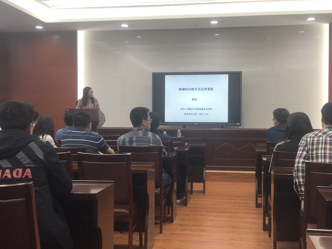 一楼学术报告厅进行了题为“碳硼烷的衍生化及应用潜能”的精彩报告。燕红,女,1965年生,教授,博导,国家杰出青年基金获得者,俄罗斯自然科学院外籍院士。1983-1990内蒙古大学化学系本科及硕士生;1990-1993年南京大学博士生;1993年毕业后留校任南京大学配位化学国家重点实验室讲师(1993-1995)。此后分别在瑞士Neuchatel(1996-1997)及德国Bayreuth (1997-2000)从事博士后研究; 美国Notre Dame (2000-2004)做研究助理,2005年起为美国Nanova Inc.化学家,2005年9月应聘为南京大学教授,2006年3月评为博士生导师。2006-2007年任无机化学教研室主任,2008-2015年任无机学科副主任,2009-2015年任南京大学化学化工学院公共仪器平台主任。2015-2016年担任化学化工学院副院长。2008年被评为江苏省“青蓝工程”优秀中青年学术骨干带头人。2009年获国家杰出青年基金。2011年被聘为南京微结构国家实验室唐仲英特聘教授, 2012年入选南京大学高层次学科带头人(特聘教授)奖励计划。2012 年获教育部自然科学二等奖。2015年当选为俄罗斯自然科学院外籍院士。教学与科研涉及领域为配位化学,金属有机化学,有机化学,有机发光材料等,已在JACS, Angew,Chem.Sci, Chem.Commun,Org. Lett.等国内外刊物上发表研究论文170 余篇。 2013-2015,2019-2021为美国化学会Organometallics 杂志国际编委。此次学术报告由xp天堂