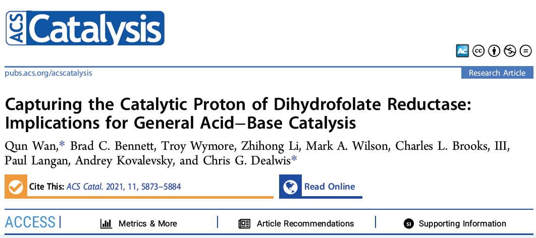 万群课题组和美国凯斯西储大学Chris Dealwis课题组合作,近日在国际权威期刊ACS Catalysis发表了论文“Capturing the Catalytic Proton of Dihydrofolate Reducatase: Implication for General Acid-base Catalysis”。xp天堂