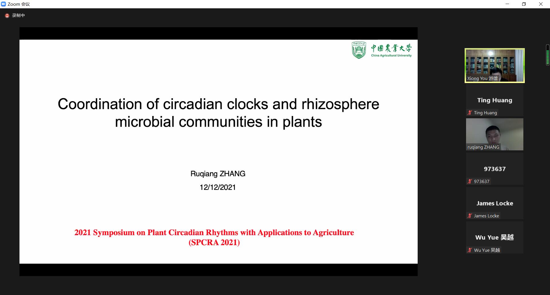 园艺学院博士生黄婷等也做了专题汇报,专家分别给予点评和建议。来自中国、美国、英国和尼日利亚的70多位专家和青年学者参加了这次会议。 会议结束时,与会专家学者一致表示,植物生物钟是当前生物学研究的热点课题,在农业生产中具有广阔的应用前景,希望以后多举办类似会议,加强进一步的交流和合作。