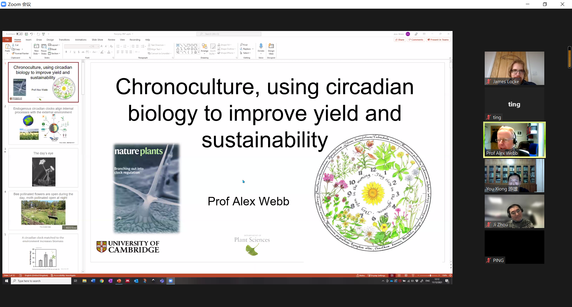 主办的“2021年植物生物钟与农业应用系列报告” 2021年12月11日-12日在线召开。应邀做大会报告的专家有英国剑桥大学植物科学系Alex Webb教授,xp天堂