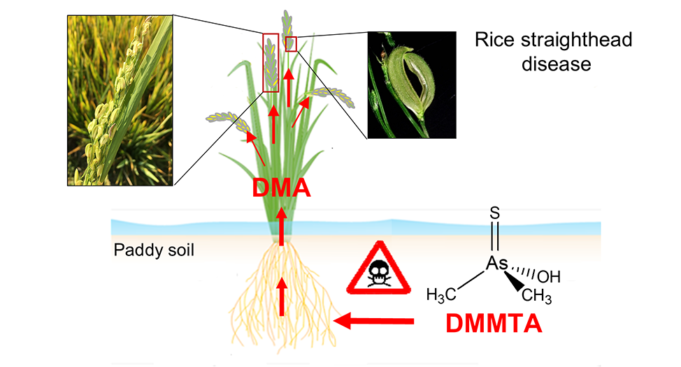 环境中砷的形态多样,稻田土壤中主要包括无机五价砷(As[V])、无机三价砷(As[III])、二甲基砷(DMA)和单甲基砷(MMA)。近期研究发现,土壤溶液中还存在二甲基单巯基砷(DMMTA),其为DMA巯基化产物,含量可达DMA的60%左右。由于巯基化可能进一步增强砷的植物毒性,DMMTA是否参与水稻直穗病的形成尚不明确。
