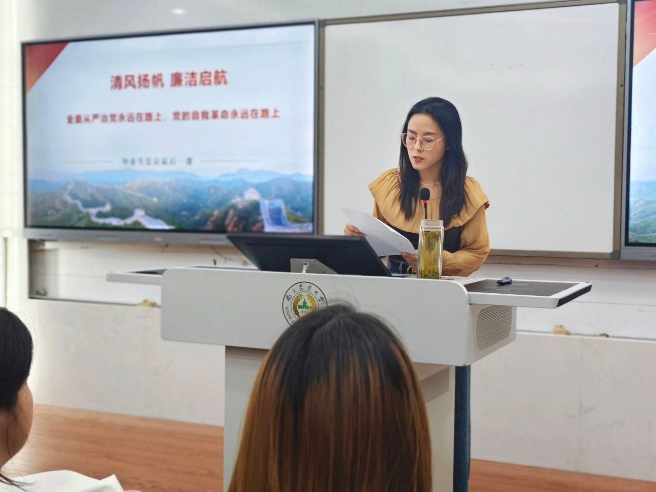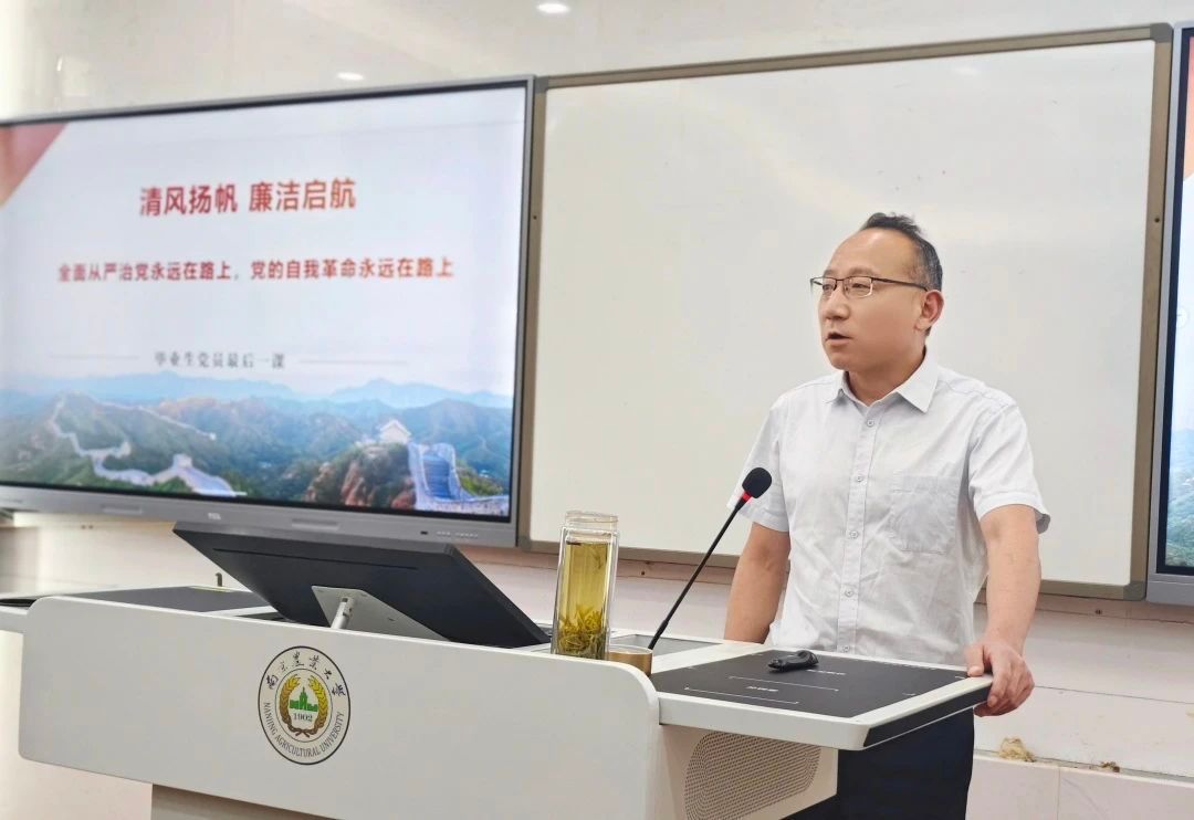 院党委副书记桑运川以“清风扬帆,廉洁启航”为主题为毕业生党员带来了最后一节党课。