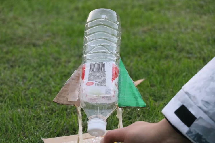 微党课宣讲后,师生齐聚主楼草坪,开展实践活动。在老师们的指导下,学生党员分小组顺利组装好火箭,蓄势待发。随着一声令下,同学们点燃激情,“嗖”的一声,火箭如离弦的利箭一飞冲天,冲出了气势,冲出了青春的朝气。虽然有的火箭中途熄火,但同学们敢尝试,敢试错,坚持不懈、寻找并解决问题的精神却在这个冬日更显可贵。一次次点火,一次次坚持,这未尝不是青春最好的注脚。同学们博观约取,注重积累,行其路,笃其行,而后致其远。“载人航天精神”在此刻生动具象化,信仰之火生生不息。“思想的火炬,引领前进的步伐”同学们拒绝坐而论道,慨然起而行之。