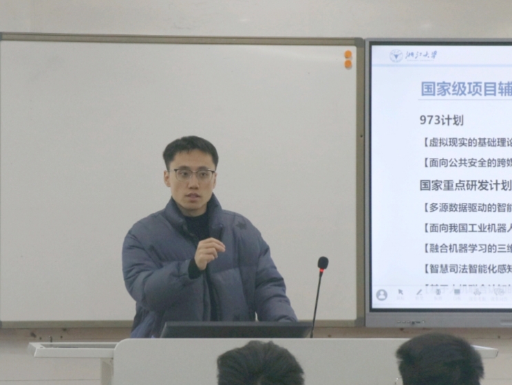 杨力臻学长则侧重于读博方面的分享。他以全重简介、学科优势、读博日常和毕业去向四个方面来展现浙江大学强大的科研背景。计算机辅助设计与图形学国家重点实验室有着强大的学科辅助支撑和国家级项目辅助支撑。而读博的生活除了写代码、发文章,还可以提供更多的机会去见识世界的广阔和精彩。最后,杨力臻学长向我们介绍了主要的就业去向,也积极鼓励我们报考浙江大学的博士生和研究生。