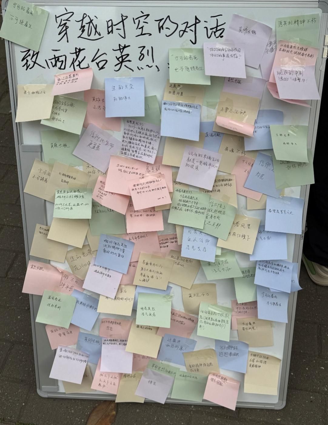 答题环节结束后,全体参与者在便利贴上写下对雨花英烈的寄语。有的学生以诗句致敬:“君血化碧雨,我辈承其志”;有的用质朴语言承诺:“你们守护的河山,我们必以青春捍卫”。短短两小时,展板上便汇集了几十份留言,形成一座“跨越时空的对话墙”。这些文字不仅是缅怀,更是当代青年与革命先辈的精神共鸣。