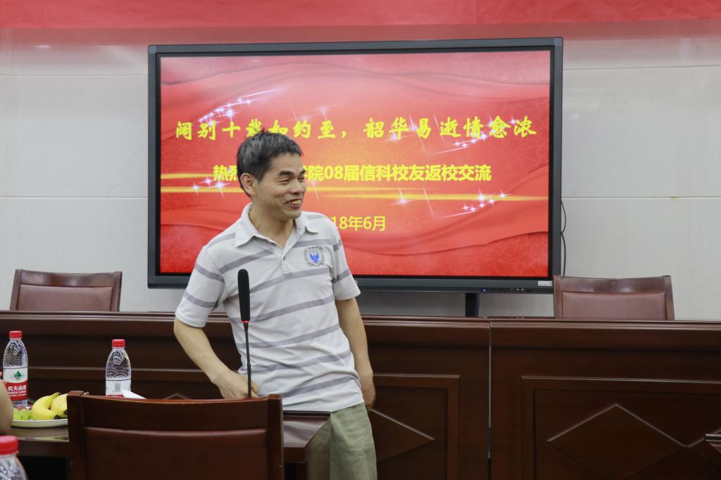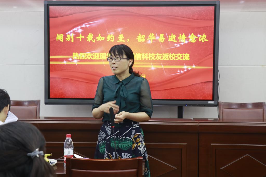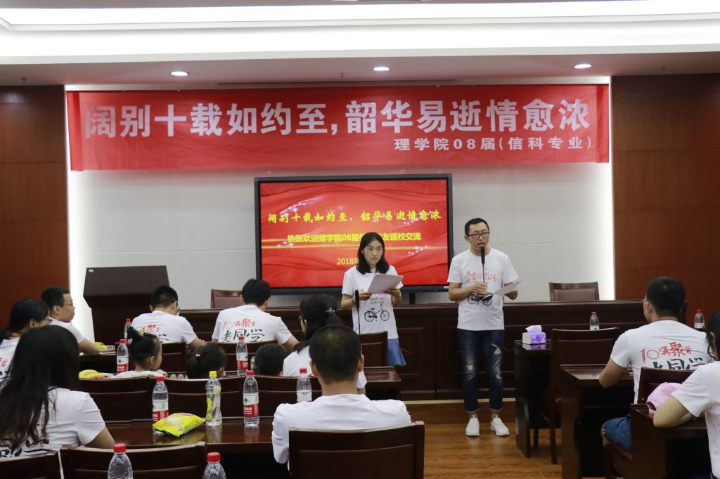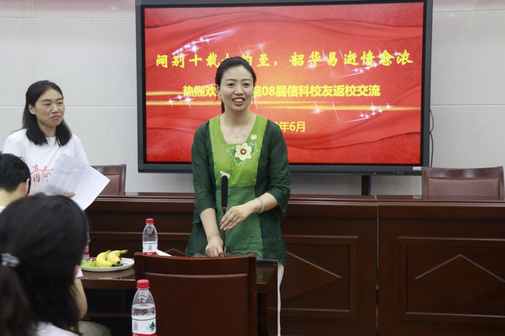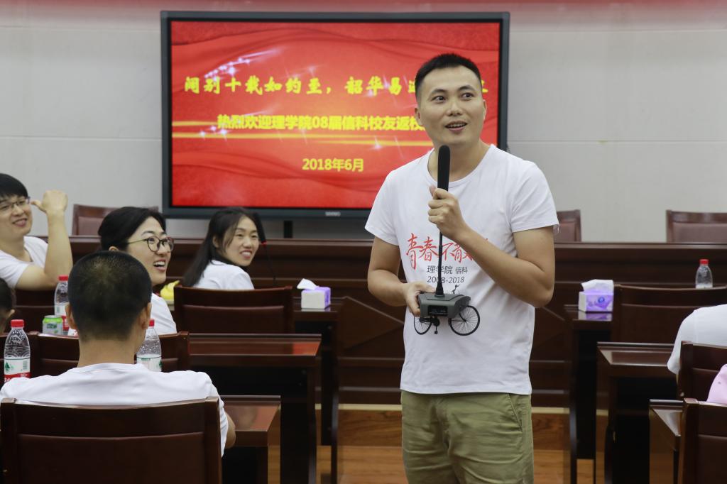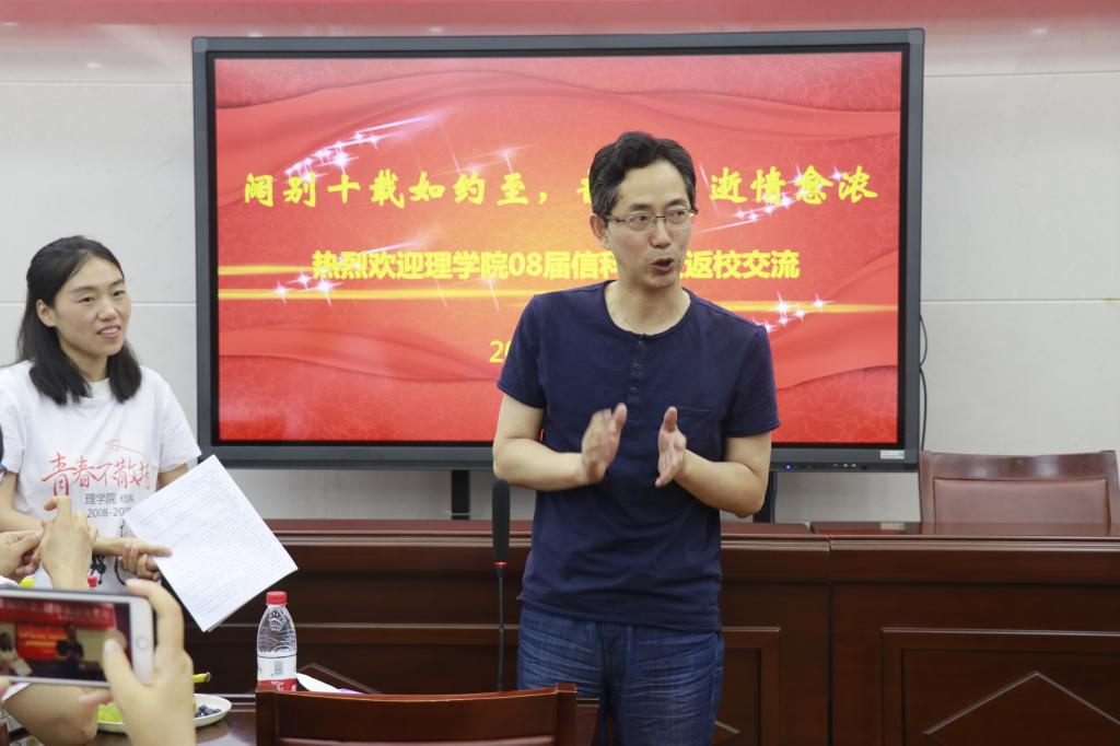 的热爱等;李爱萍老师感慨地说到,昔日风华正茂的少年,如今已各自组建家庭,升级为人父和人母,往昔的时光仿佛就在昨日;吴清太老师对大家的未来的发展与成就表示祝福与期望;刘照云老师谈到2004级信科班是她第一次参加工作带的班级,与大家共处四年,有着特别深厚的感情,希望同学们以后能常回来看看。紧接着,金琛峰同学朗诵自创诗歌《唐多令*信科十年聚首》,表达此刻激动的心情。不同领域发展的同学也相继分享了自己的工作经历和成长历程。