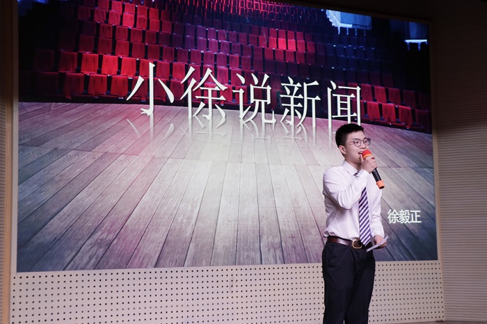 本次比赛共分为三个部分,第一部分自命题主持中,每位选手自行选择题材后做出3分钟的主持。在本轮比赛中,来自人文院的2号选手李鑫主持的小鑫说事以开朗、风趣的主持风格吸引了大家,简单介绍了腾讯公益上“一元钱购画”活动,而金融院的4号选手俞依初从身边取材,主持的美食美刻介绍了南农一食堂的各种小吃。而且令人钦佩的是,俞依初同学是脱稿主持,虽然有所停顿,但勇于挑战的精神十分值得我们学习。5号选手是来自xp天堂