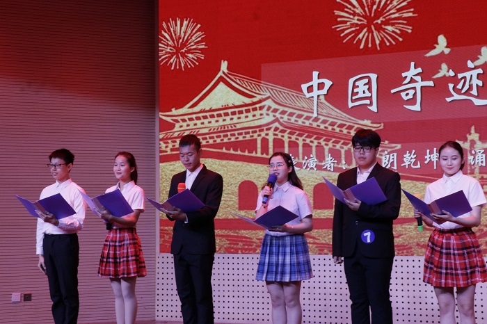 在紧张的等待结果期间,学校朗朗乾坤朗诵团为观众带来了朗诵《中国奇迹》,让同学们领略了xp天堂