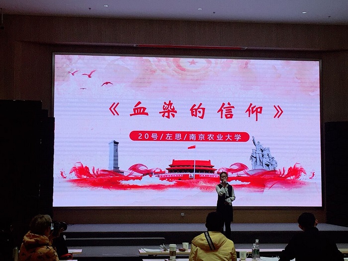 邹萌同学则讲述了红色青春故事:许包野毅然投身革命,而妻子用尽半生等待丈夫的归来,评委以及观众在感动之余油然而生的更是对烈士深深的敬佩。而刘子涵同学从小便对志愿服务非常向往,她讲述的李耘生的经历与事迹让观众感动于红色亲情,感动于烈士的毅力。左思同学则从不同角度讲述了李耘生的故事,一句“双旦,双旦,未敢白头言倦”,仿佛穿越时空,再现当年情景。最后是王琛同学,她带来的是冷少农烈士的家书,从一字一字的家书展现的冷少农的果敢与坚毅,无论是母亲的误解,还是时局的错综,没有什么可以阻止他投身革命的热情。