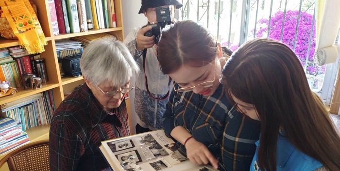 在交流中,马丽佳奶奶拿出了一本相册,在上面详细记录着父母及自己的故事,真实的而又感人。一页页翻看这本相册,生命的厚度与力量让我们为之一震,多次泪目。