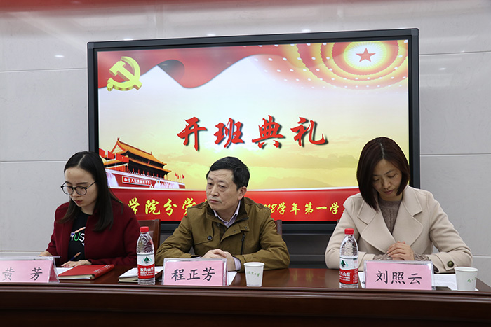 整场典礼在铿锵有力、激动人心的中华人民共和国国歌中拉开了序幕。在介绍了出席此次典礼的领导老师后,首先由预备党员代表陈悦同学发言,和大家分享了自己对于党员的理解,以及在学习等方面应该如何管理自己。紧接着由新生代表丁跃影同学发言,表明了自己对入党的热情和决心。随后是党建班班长金如宾同学介绍了本学期分党校党建工作的培训计划与学员规范,强调了培训纪律。最后,刘照云书记对所有学员寄语,党员不仅要学习成绩优异,更要有高的思想觉悟,学会有方法地关爱他人、关爱社会,在大学这个“小社会”中学会更好地以一名党员的身份生活学习。