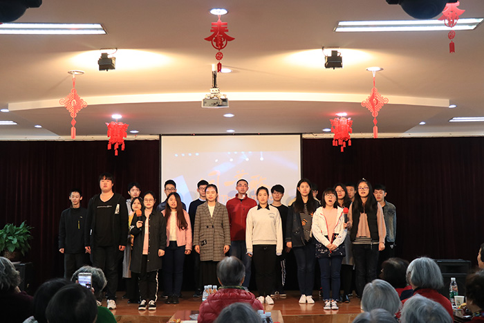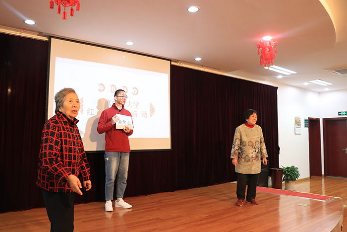 而应化二班朱赟同学的一曲《最美的太阳》又将活动带入另一个高潮。第二部分结束后,串场游戏第二轮——击鼓传花,同学们与老教师们玩在一起,唱在一起,乐在一起。