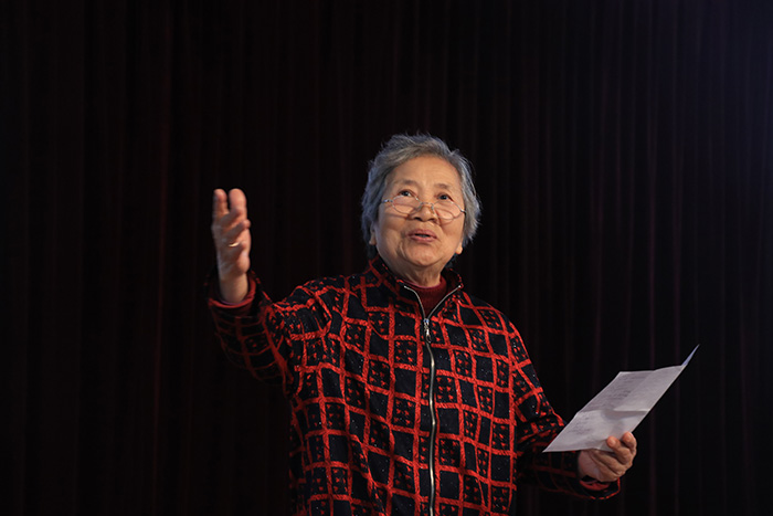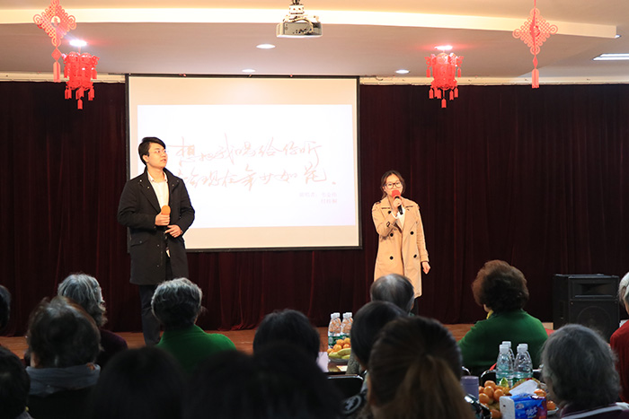 党委副书记刘照云发言,刘书记表达了对老一辈工作者的敬意,并祝福她们健健康康,在接下来的日子里笑口常开。随后宣布演出正式开始。
