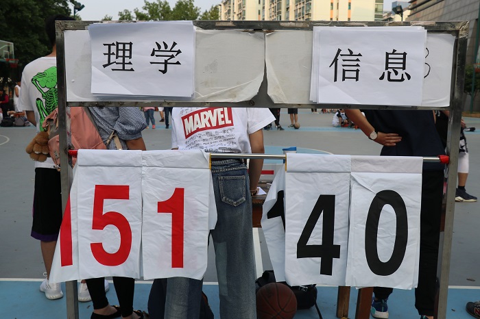 5月9日,第四场比赛是我院与园艺院角逐三四名的排名赛,这也是我院多年来第一次走进体育馆的赛场,每一个在场的理学人心中都有压不住的激动。上一场比赛的失利没有给我院队员带来颓丧的情绪,他们死守防线,配合默契,不给园艺院冲破防线的机会。无奈园艺院技术精湛,比分难以追平。即使如此,我院队员并未轻言放弃,队员们多次抢得篮板,积极进攻,可惜最终没有取得理想的成绩。