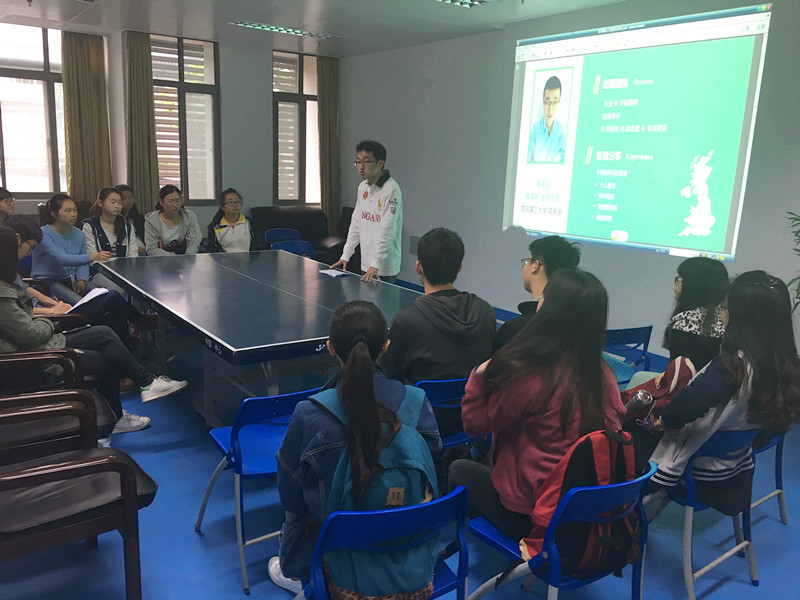 B213活动室如期展开。为了更好地响应学校“建设世界一流农业大学”的发展目标,鼓励南农学子出国深造拓宽视野、增长见识,特邀请到金融院应届毕业生徐立言,食品院生物工程应届毕业生董宣辰以及来自食品院研究生中法交换生魏然三位同学向大家分享境外高校申请以及学习英语的经历经验。
