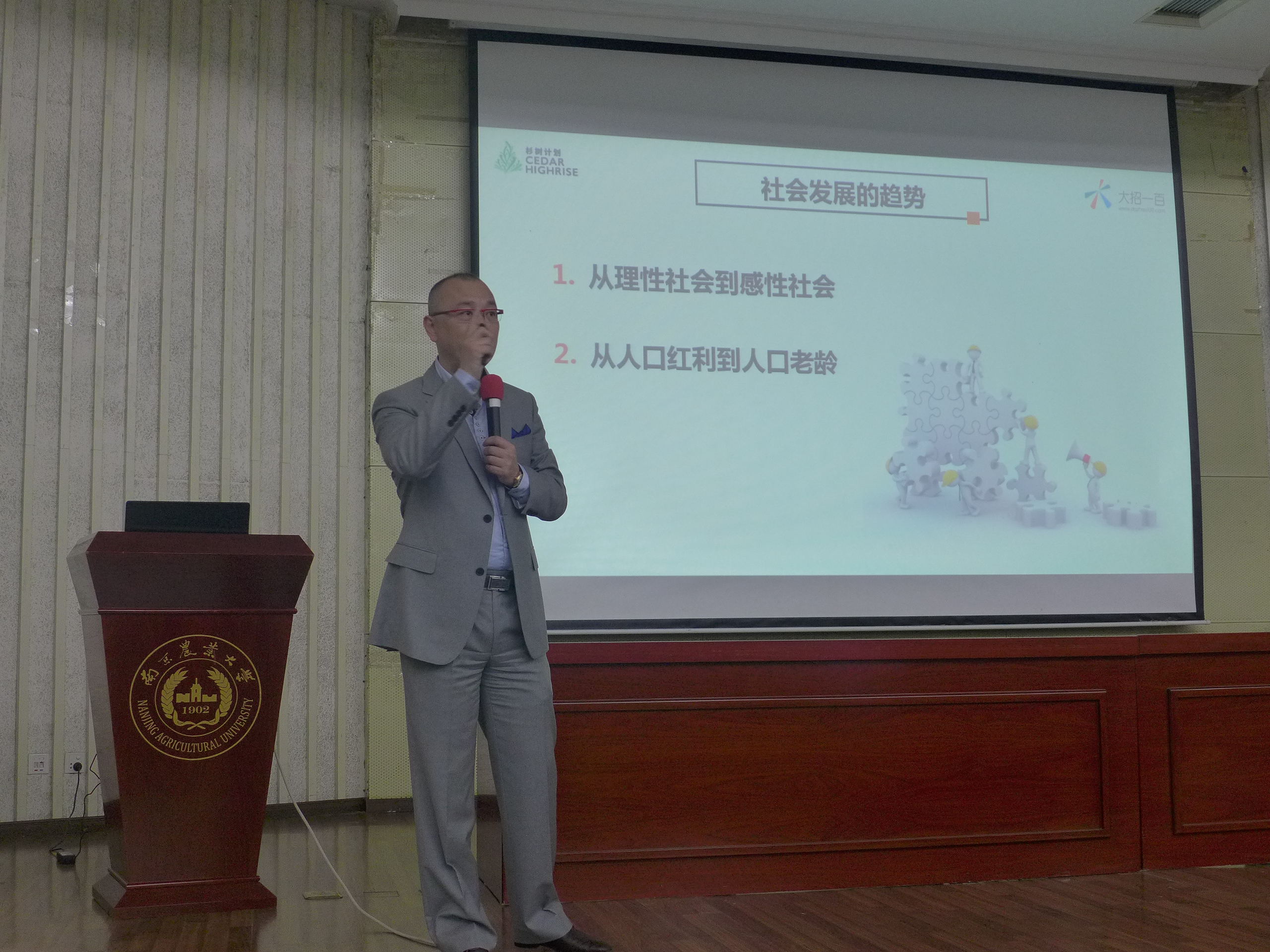 主讲人正是大招一百网的创始人张宇松,有着“姜爷”之称的骨灰级猎头,同时,他还有杉树基金会副理事长等多个头衔。