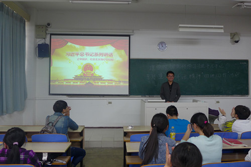 活动最后,学生会刘任远主席还以习近平总书记去年5月4日在北京大学讲话中提到的“勤学、修德、明辨、笃实”的要求勉励大家对党科学理念的信仰,对走中国特色社会主义道路实现“中国梦”的信念,对党和政府的信任以及对以习近平总书记为党中央的信赖这“四进四信”的落实与坚持,获得了同学们的广泛好评。