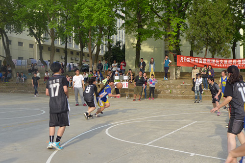 4月22日下午3:50,篮球场上打响了一场艰难的战役,我院女篮对战实力强劲的对手——经管院女篮,比赛一波三折,激烈异常,最终我院女篮以21:15的比分进入四强。
